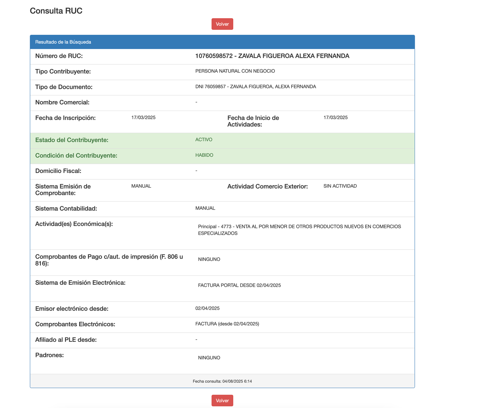 and here is the record of our Store by the SUNAT