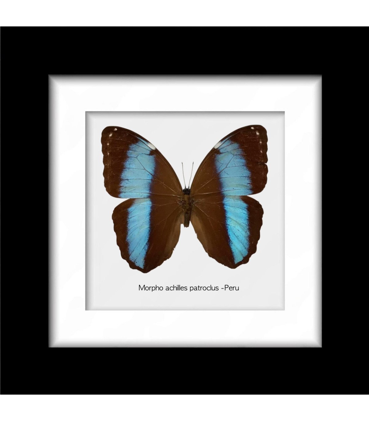 SPECIES: Framed Morpho achilles patroclus (Male) butterfly native to Peru